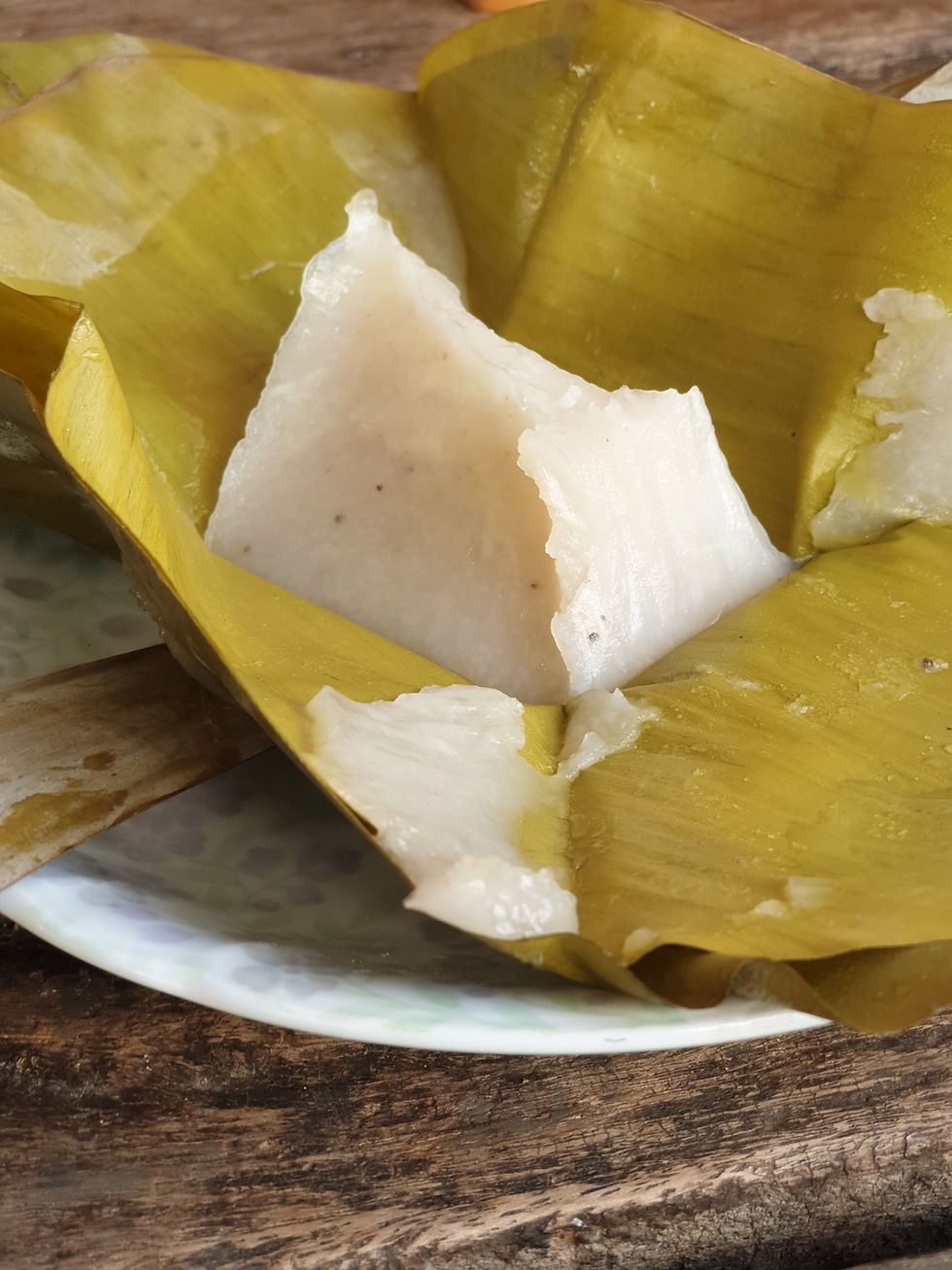 ขนมบ้านนี้ใช้เตาถ่านในการปิ้ง และนึ่ง เป็นกรรมวิธีธรรมชาติพื้นบ้าน ซึ่งถ่านเป็นถ่านไม้แก่ ที่ช่วยส่งเสริมให้ขนมที่ห่อใบตองมีกลิ่นหอมละมุนของใบตองที่เกรียม นอกจากนั้นกลิ่นไอนี้จะกระตุ้นให้ข้าวเหนียว และแป้งมีรสชาติที่กลมกล่อมมากขึ้น แถมการที่บ้านเราไม่ใช้แก๊สนั้นยังเป็นการช่วยสิ่งแวดล้อมอีกด้วย